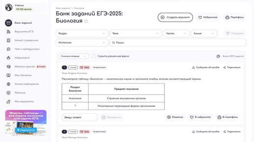 «а где найти тесты по бактериям?» «дайте, где решать генетику!» «скиньте пожалуйста задания по фотосинтезу?» «у кого есть 10 вариант рохлова?» 🙂 Я думал, уже все знают о моем бесплатном банке заданий на платформе, но оказалось, что нет! Поэтому рассказываю, что там интересного: ❤️10 000 заданий! Десять тыщ! Если решать каждый день по пробнику, то на это уйдет целый год. Все типы задач представлены в огромном количестве (например, по небольшой ботанике — 900 заданий). Мораль: тебе не нужно покупать...
