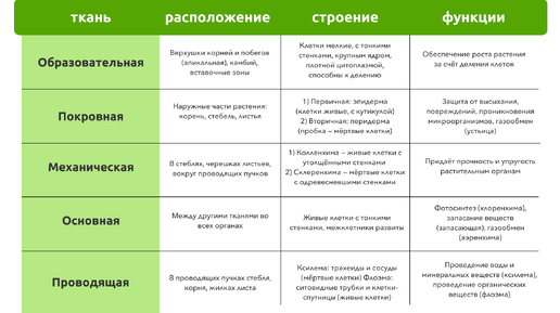Все ткани растений для ОГЭ по биологии