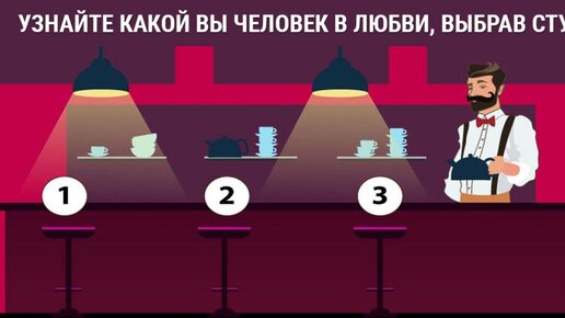 Тест про любовь и отношения основан на выборе подсознания, который происходит независимо от сознательных мозговых размышлений. Простой тест со стульями откроет вам тайну ваших истинных стремлений. Тест про любовь и отношения Рассмотрите все картинки со стулом, и представьте, что вы зашли в пустое кафе, и можете занять любое место. Какое вы выберете для себя, так вы ведете себя в любви: • Выбор стула, стоящего слева говорит о вас, как о романтике. Вы оказываете своему партнеру полное доверие, но требуете его полного внимания к своей персоне...
