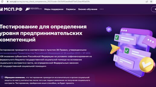 С 2024 года в Ставропольском крае обязательным условием для получения государственной поддержки в виде социального контракта в размере 350 000 рублей, является прохождение тестирования для определения уровня предпринимательских компетенций. При подаче заявки, сотрудники предупреждают не проходить тест со своего аккаунта госуслуг, поскольку тестирование проводится единожды в год и обязательное условие прохождения теста – личное присутствие в отделении соцзащиты, где была подана заявка на участие в получении субсидии...