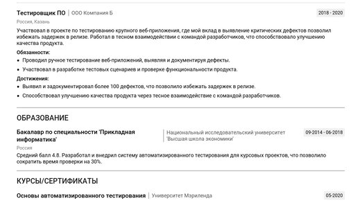 Как составить резюме тестировщика ПО: примеры и шаблоны 2025