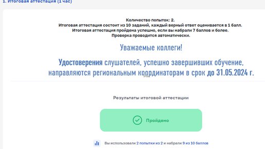 Ну вот мы и дождались итогового тестирования. Для зачета необходимо правильно ответить на 7 вопросов из 10. К сожалению в одном вопросе я все-таки допустил ошибку, но это не критично.