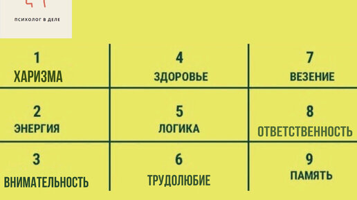 Добрый день, друзья! Сегодняшний тест я и сама буду проходить впервые, мне об этом тесте рассказала моя преподавательница по психологии. Данный тест, показался мне необычным, потому что в нем присутствуют элементы нумерологии. Но мне кажется это только плюс. Помимо того, что Вы определите Ваши сильные стороны, Вы еще и потренируетесь в математике. Суть теста такова: Есть цифры от 1 до 9 и каждой цифре присуще какое-то качество. Пользуясь своей датой рождения, Вам предстоит высчитать самое развитое качество из этих девяти...