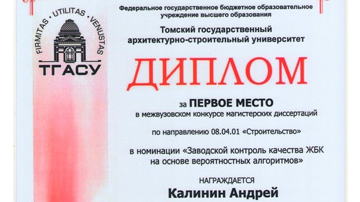 научно-образовательных, в т. ч. международных, мероприятий, прошел ежегодный региональный межвузовский конкурс выпускных квалификационных работ по направлению «Строительство». От нашего вуза были представлены 2 работы, защищенные в 2025 году на кафедре строительных конструкций и технологий строительства: 📝магистерская диссертация на тему «Оценка эксплуатационной пригодности железобетонных предварительно напряженных ферм на стадии изготовления», выполненная магистрантом группы ТиПм-23 Калининым Андреем Владимировичем под руководством к...