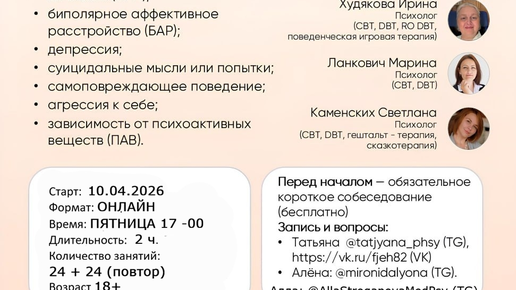 Спешу поделиться, что в апреле планируется старт группы тренинга навыков DBT. Тренинг навыков Диалектически-Поведенческой Терапии (ДПТ / DBT)