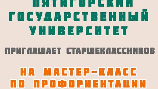 Пятигорский государственный университет приглашает обучающихся 9-11 классов на мастер-класс по профориентации «Как найти своё место в мире п