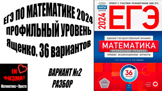 In ФИЗМАТ1173 читали · 2 года назадПодписатьсяЕГЭ по математике 2024 год. Профильный уровень. Ященко, 36 вариантов. Вариант 2. Разбор