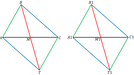 Добрый день! Сегодня речь пойдет о признаках равенства треугольников. Три основных нужно знать обязательно: по двум сторонам и углу между ними, по стороне и прилежащим к ней углам и по трем сторонам. Но оказывается, это не все признаки. Сейчас мы докажем другой, четвертый признак равенства треугольников. Если две стороны одного треугольника и медиана, проведенная к третьей стороне этого же треугольника равны соответственно двум сторонам и медиане, проведенной к третьей стороне, другого треугольника, то такие треугольники равны...