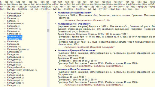 Ищем однофамильцев и предков в списках репрессированных в СССР. Фамилия КОлЕганов для примера.