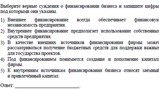 Добрый день, дорогие читатели! Я продолжаю обзор открытого варианта ЕГЭ-2022 по обществознанию, недавно опубликованного на сайте ФИПИ. Сегодня мы поговорим о заданиях 5-8 этого варианта: ☑ задание 5 о внутреннем и внешнем финансировании бизнеса; ☑ задание 6 по характеристикам факторов производства; ☑ задание 7 на нахождение характеристик рынка по описанию; ☑ задание 8 на знание элементов и видов социального контроля. 🔗Ссылка на обзор заданий 1-4 открытого варианта ✅ЗАДАНИЕ 5 📝Отличие между внутренним...