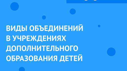 Детское объединение - основное структурное звено в системе дополнительного образования. Это группа детей и педагогов, объединенных сходными интересами, целями и потребностью в общении и совместной деятельности. Основные виды (формы) детских объединений: 1. Кружок – традиционная, базовая форма объединения детей по интересам. Главная цель – обучение, формирование знаний, умений и навыков касательно конкретного предмета. Кружки могут быть социально-гуманитарной, художественной, естественнонаучной, технической и туристско-краеведческой направленности...