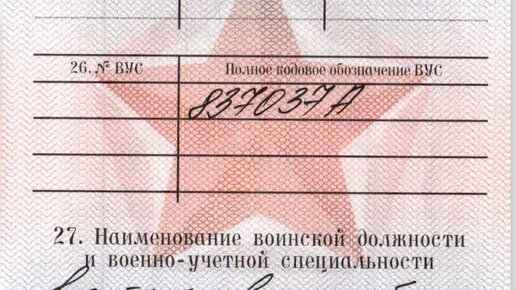 Код ВУС: ХХХ УУУ А, где XXX — специальность, YYY — должность, А — признак военной службы...