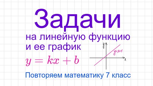🔹 Подборка Повторяем математику 7 класс здесь 🤩 Поддержи меня лайком, комментарием или подпиской! 😇 Два прошлых занятия мы повторяли саму линейную функцию y=kx+b и ее график. Если вы пропустили эти занятия, посмотрите их тут, т.к. сейчас мы во многом будем опираться на тот материал: ❓❓❓ Если возникают вопросы - пишите в комментариях - я всегда отвечаю 🤗🤗🤗 Задача 1. Дана функция у=-3/5x+12. Найдите значение функции при х, равном 15. Задача 2. Дана функция у=11/4x+23. Найдите значение х, при котором значение функции равно 1...