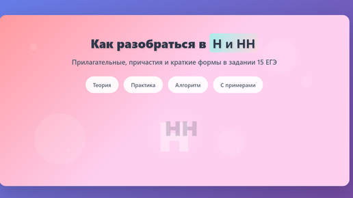 В этом задании нужно определить, сколько букв Н писать в слове – одну или две. Ошибка часто возникает не из-за незнания конкретного правила, а потому, что ученик неправильно определяет, к какой части речи относится слово и от чего оно образовано. Встречаются три основных типа слов, которые могут вызвать путаницу: Чтобы писать Н и НН без ошибок, нужно уметь различать эти типы слов и помнить правила для кратких форм. В задании 15 ЕГЭ может быть два варианта условия: Если прочитать невнимательно...