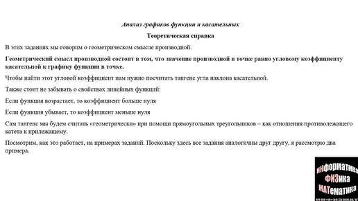Задания на анализ графиков функций и касательной в №6 ЕГЭ по математике профильный уровень. Теоретический и практический разбор