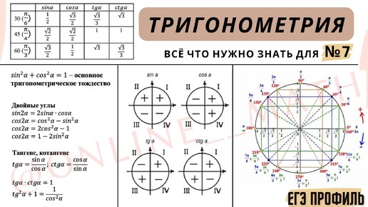 ТРИГОНОМЕТРИЯ ЕГЭ ПРОФИЛЬ: ФОРМУЛЫ ДЛЯ ЗАДАНИЯ №7