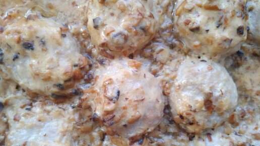 Блюдо несложное, нежное и сочное. Подливы в жаровне почти не останется, так что на гарнир выбирайте пюре или спагетти с сыром. Из чего готовим: Рубленые биточки почти всегда готовят в духовке, разнятся подливки, можно класть в фарш начинку или нет. Можно даже сделать всё наоборот: обжаренные до готовности грибы завернуть в фарш, а из сырной стружки приготовить соус. Как готовим: Фарш в списке ингредиентов уже указан готовым. Если будете его перемалывать собственноручно, обязательно удалите жилки и плёнки, массу перемелите дважды, на крупной, а затем и мелкой решётке...