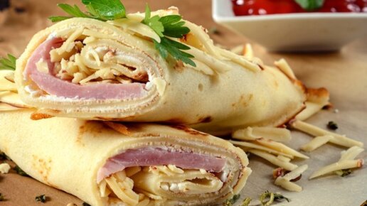 Как завернуть блины с ветчиной и сыром - Рецепт блинов с начинкой ветчины сыр.
