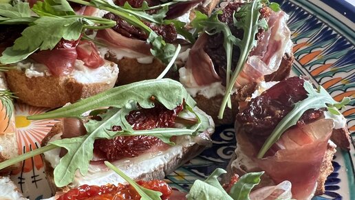 Это очень простой, но вкусный рецепт. Хамон можно заменить на любую сырокопченую колбасу или мясо. Точное количество ингредиентов не привожу, так как будет меняться от объема приготовления, При расчете ориентируйтесь на то, что на каждый кусочек хлеба кладем...