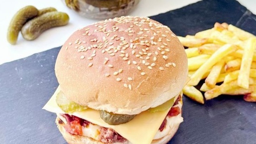 Думаете, бургер — это обязательно котлета? А вот и нет! Представляем вам легендарный американский бургер «Джо-растяпа» — с сочной, ароматной начинкой из рубленого мяса в томатном соусе. Тот случай, когда чем больше начинки выпадет на тарелку, тем вкуснее! • Булочка для бургера - 2 шт.