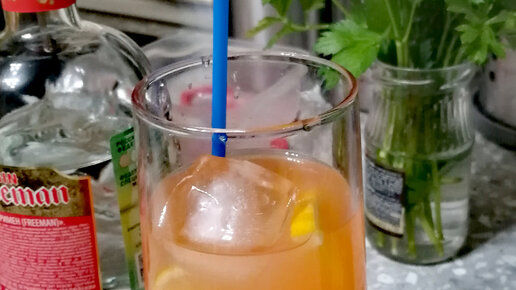 Ингредиенты: Итак. Рецепт: - Берём бокал. Добавляем лёд. У меня 3 больших кубика, а также ломтик лимона и апельсина. - Добавляем сироп гренадин 10 мл (я использую марку Баринофф, и по цене устраивает и по вкусу вполне. - Теперь алкогольная составляющая: сегодня это джин Фримен - 40 мл, в чистом виде я его не пробовала, а вот в коктейлях использовать люблю, ни единого раза после него не болела голова, стоит вполне приемлемо, а если брать в небезызвестном разноцветном алкомагазине, то цена ещё более приятная...