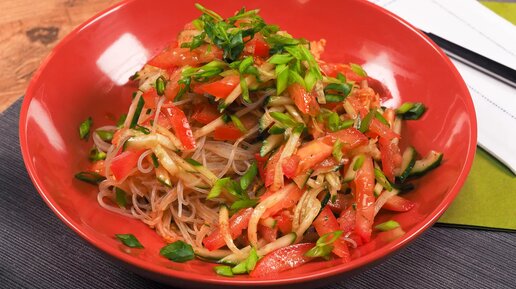 Салат с фунчозой и помидорами — один из самых простых и быстрых рецептов. Салат будет стоять на столе уже через 20 минут после начала приготовления. Блюдо отлично сочетается с любыми видами мяса и рыбы. Стеклянная лапша с помидорами считается диетическим блюдом. Этот салат готовят в пост, а также он подходит вегетарианцам, потому что не содержит продукты животного происхождения. Добавляйте любые специи и перец, если хотите сделать блюдо пикантнее и острее. Калорийность - 166,53 ккал Белки - 0,92 г Жиры - 5,86 г Углеводы - 30,07 г Пищевая ценность на 100 г...