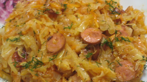 Квашеная капуста, тушенная с сосисками