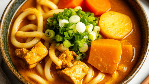 Карри-Удон (Удон с японским карри) Самый уютный и сытный вариант. Японский карри — не острый, а густой, сладковатый и ароматный. Ингредиенты: Приготовление: