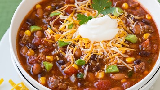 Здравствуйте, дорогие читатели! Сегодня мы с Вами научимся готовить суп Тако для сытного и вкусного семейного обеда! Время приготовления: 35 минут Порций: 6 Ингредиенты: Приготовление: 1) Нагрейте большую кастрюлю на средне-высоком огне, слегка полейте маслом. 2) Добавьте говяжий фарш вместе с мелко нарезанным луком, помешивая, пока не поджариться. Добавить халапеньо и чеснок и варить чуть больше минуты. 3) Слейте лишний жир из смеси говядины. 4) Смешайте помидоры с Чили, говяжьим бульоном, томатным соусом, тмином, паприкой, орегано и приправьте солью и перцем по вкусу...