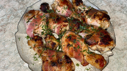 Предлагаю приготовить необычные куриные голени, запеченные в беконе.