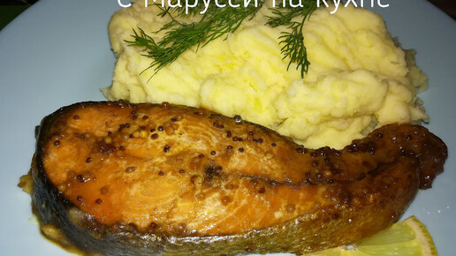 Стейки кеты в горчично-медовом маринаде, запечённые в духовке.