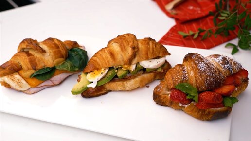 Здравствуйте, дорогие читатели!) Эти вкуснейшие начинки, которые идеально подойдут на завтрак, обед или к чашечке кофе! А перед приготовлением можете ознакомиться со статьей "Домашние круассаны!" Ингредиенты: 1. Для сырной начинки: 2 ломтика моцареллы 1 ломтик череда 3 ломтика ветчины неострая горчина горсть листьев шпината 2. Для сладкой начинки: 100 г рикотты 1-2 ст.л. клинового сиропа свежая клубника по вкусу свежая мята сахарная пудра 3. Для начинки с яйцом: 40 г жаренного бекона 1/2 авокадо 1/2 куриного яйца (вкрутую) щепотка соли, перца Приготовление: 1...