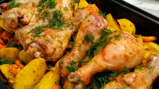 Сытный ужин в духовке! Куриные ножки с картофелем!