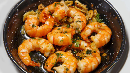 Вкусные чесночные креветки на сковороде. Как приготовить креветки. Жареные креветки с чесноком
