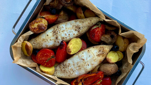 РЕЦЕПТ. Запечённый синекорый (чёрный) палтус с овощами