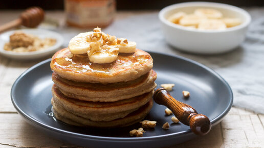 Банановые панкейки считаются идеальным вариантом воскресного завтрака. Они готовятся быстро из доступных ингредиентов, получаются в меру сладкими без большого количества сахара в составе. Кроме того, при правильном выборе компонентов их можно использовать для правильного питания! Банан будет выступать в качестве начинки и натурального подсластителя. Он поможет заменить всевозможные сладкие топинги, с которыми подаются традиционные панкейки. Мы рассмотрим простой рецепт приготовления пышных банановых блинчиков без сахара...
