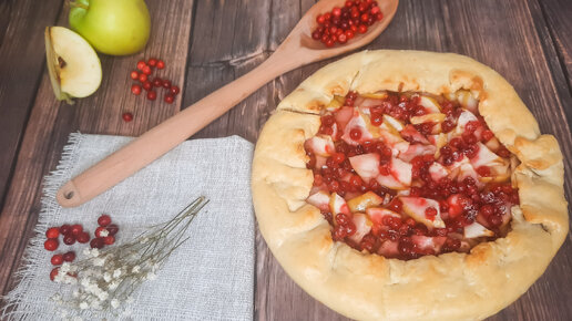 Открытый пирог с брусникой и яблоком