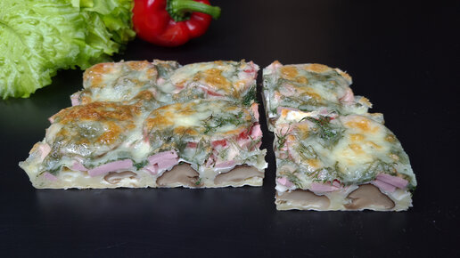 Пицца на завтрак по- домашнему с грибами, колбасой и сыром!