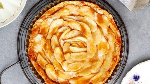 Яблочный пирог из слоеного теста. Вкусный, с хрустящей корочкой и ароматной начинкой