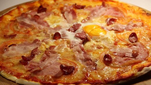 Пицца "Карбонара" - рецепт вкуснейшей пиццы с беконом, луком, яйцом и тремя видами сыра