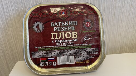 Что ждать от консервы за 200 рублей? Пробуем плов из баранины от "Батькиного резерва"