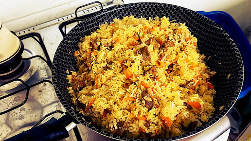 Плюньте в рожу тем, кто говорит, будто настоящий плов должен быть на костре и в казане. Вчера я приготовил плов по вкусу и составу как в халяльной узбечке. Я не пользовался крышкой потому что ее у меня нет. Моя вок-сковорода самая примитивная: Итак, котаны берите на вооружение рецепт, который очень легок в исполнении, а вы прослывете знатным поваром в кругу знакомых))) Ингредиенты: - 1 кг говядины кубиками - 1 кг лука репчатого - 1 кг моркови - 3 стакана длиннозернового риса (примерно 900 гр.)...