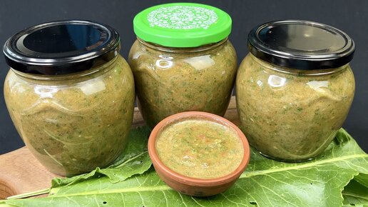 Полезная, подходит ко всему и очень вкусная! Отличная заготовка из листьев хрена с помидорами без варки и всего за 10 минут! Делаю эту заготовочку весь сезон, пока есть свои листья хрена. Готовить одно удовольствие, на пару баночек уходит, от силы, 10 минут! Подходит такая штука почти ко всему: использую как заправку в свежих овощных салатах, как самостоятельный соус к мясу или рыбе, да и просто, как пасту на хлеб или греночку - всё вкусно! Список ингредиентов и пропорции на 3 поллитровые баночки оставлю в первом комментарии под статьёй...
