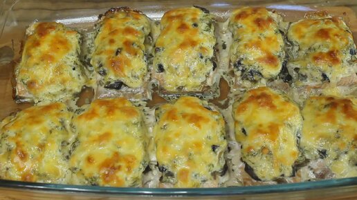 Рыба на праздник. Горбуша запеченная с луком и грибами.
