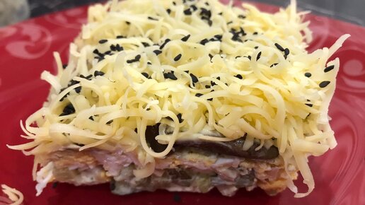 Необычный слоеный салат с курицей и грибами: пошаговый рецепт с фото, оформление
