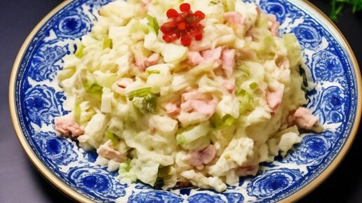 Рецепт простого салата из небольшого количества продуктов. Салат готовится быстро, получается сытным, сочным и вкусным. Он может подойти, как для праздничных мероприятий, так и для повседневной подачи...