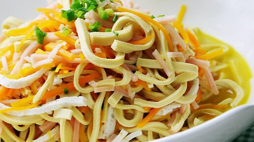 Ингредиенты: 250 г – сухой тофу (можно взять листовой или твердый тофу) 20 г – морковь 20 г – ветчины 1 стрелка – зеленого лука 2 см – имбиря 2 ч.л – шаосинского вина 150 мл – бульона 1 ч.л – сухого куриного бульона 2 ст.л – растительного масла 1 ч.л – сахара соль по вкусу Приготовление: В это рецепт, например, вы можете добавить на стадии обжаривания грибы, а вместе с тофу положить пекинскую капусту, бок-чой или ростки бобов...