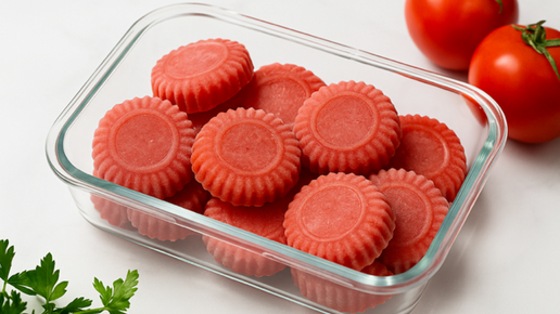на плите булькает суп, одна такая «таблетка» делает вкус ярче за пару минут. За один вечер можно заготовить порционное томатное