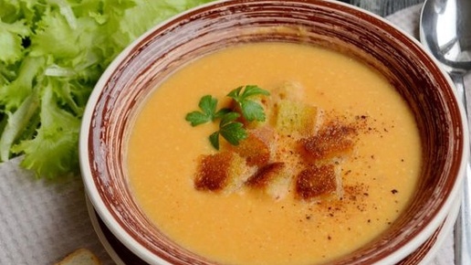 Овощной суп-пюре с сыром и гренками