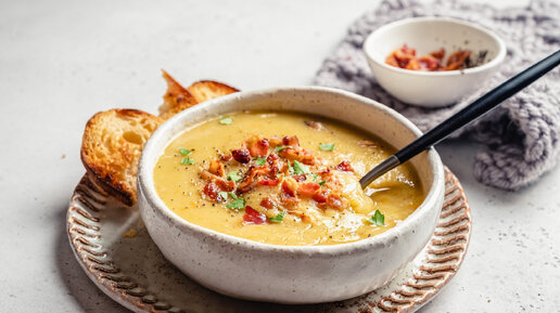 Бекон – добавка, которая придает супу насыщенности и слегка соленый вкус. Бекон обычно обжаривается до хрустящего состояния и добавляется в суп как топпинг.